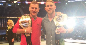 Frontin! Gustafsson and Miocic Sport Fake Gold Belts