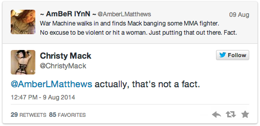 Rumors running rampant on social media suggest that the third-party was an unnamed MMA fighter who Mack was sleeping with behind War Machine’s back.