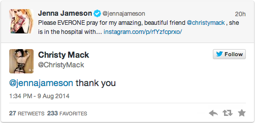 Please EVERYONE pray for my amazing, beautiful friend @christymack , she is in the hospital with massive injuries inflicted by her ex. She is a beautiful soul, and I know she has the guts to press charges on @warmachine . I know her friend was also injured, and I pray for him also, also my heart is with their families! #lovesick #staystrong #noabuse #nosilence #dontrepeatmymistake #ihaveyourback.