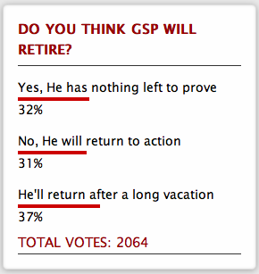 32% of you who voted believe he will retire and has nothing more to prove, but that option wasn’t the majority vote, it was second.