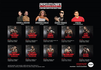 Combate Americas is a new mixed martial arts reality series that is set to debut this Sunday, February 23rd, on mun2. Latino welterweights and featherweights will be duking it out to see who in their respective divisions will be the first to earn a contract for Combate Americas. The series will provide viewers an in-depth look of who the fighters are, where they come from, and what led them to a career inside the cage.