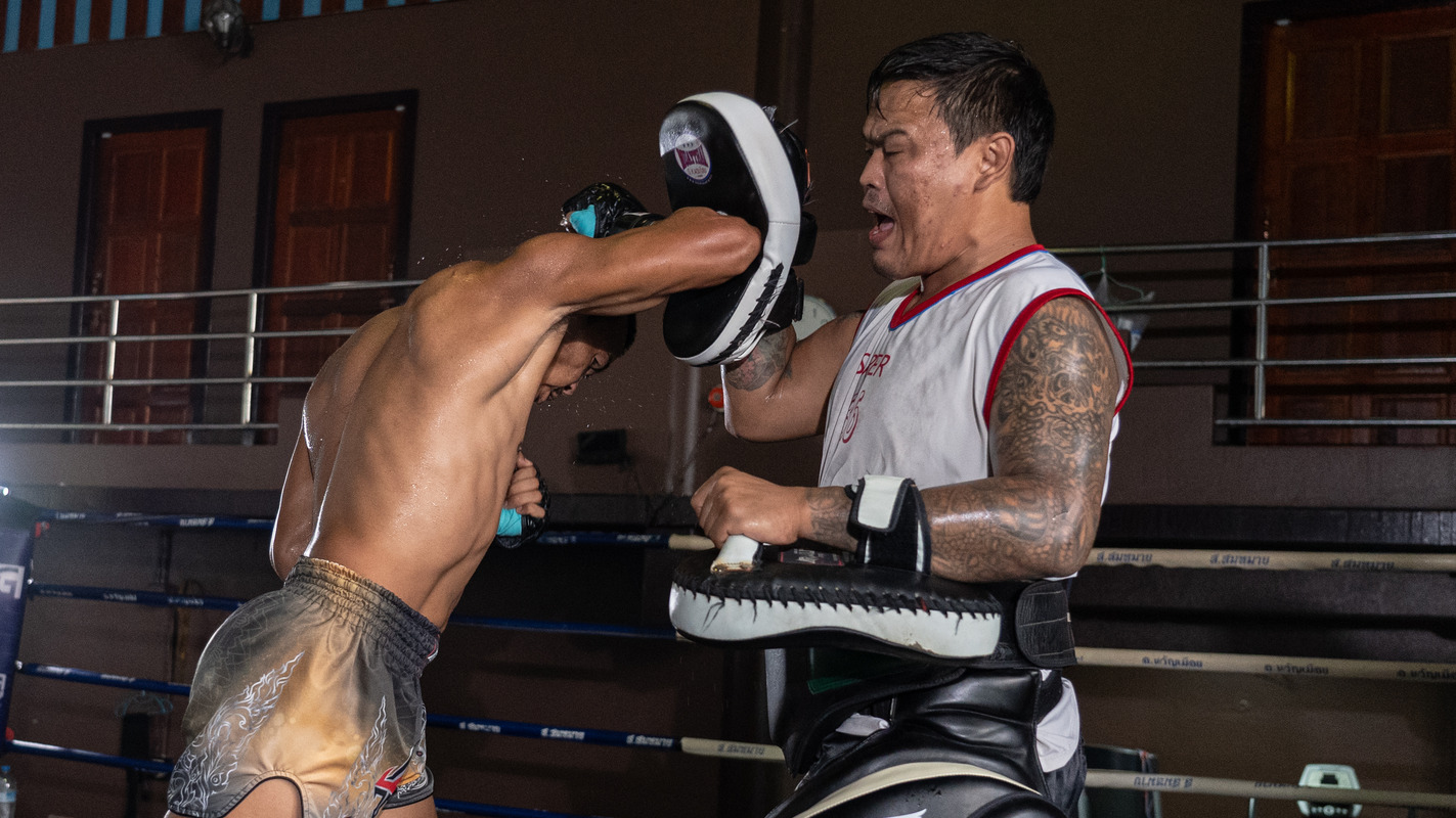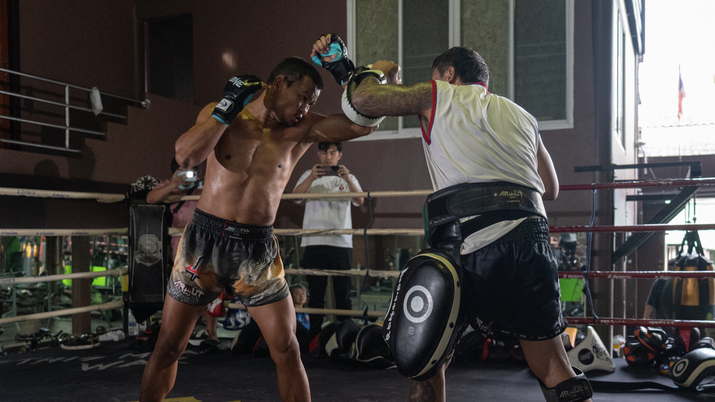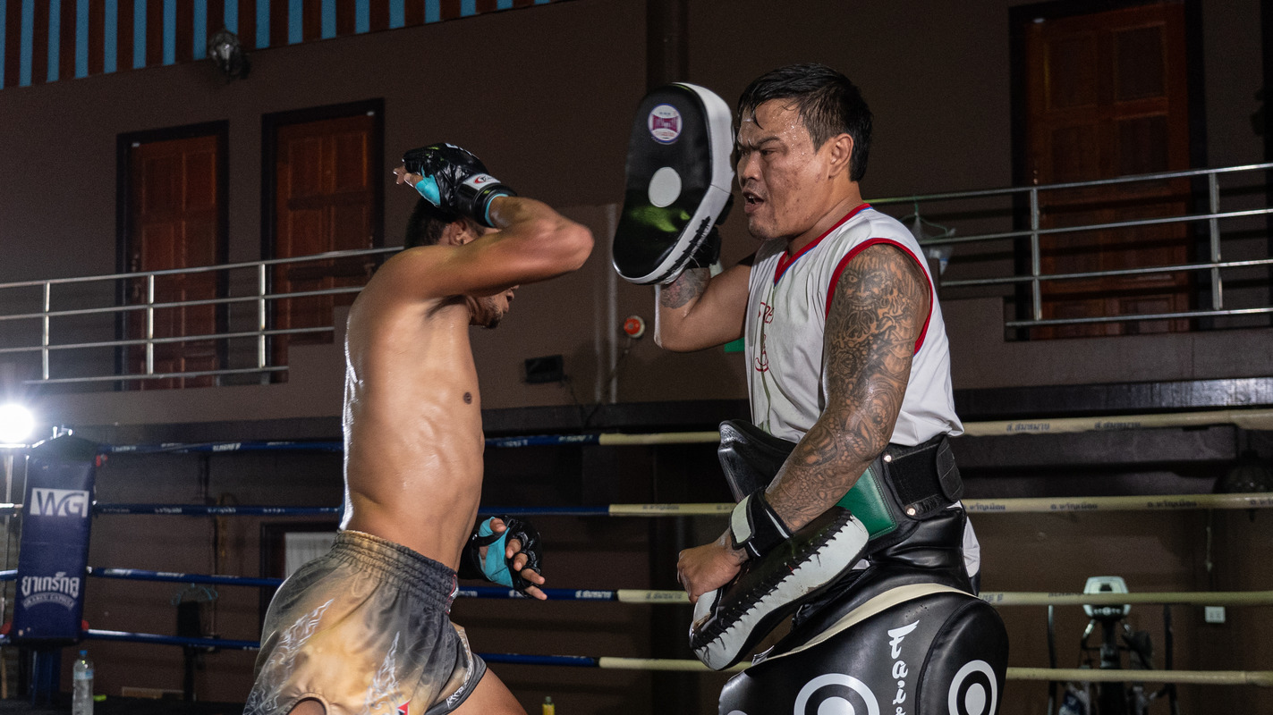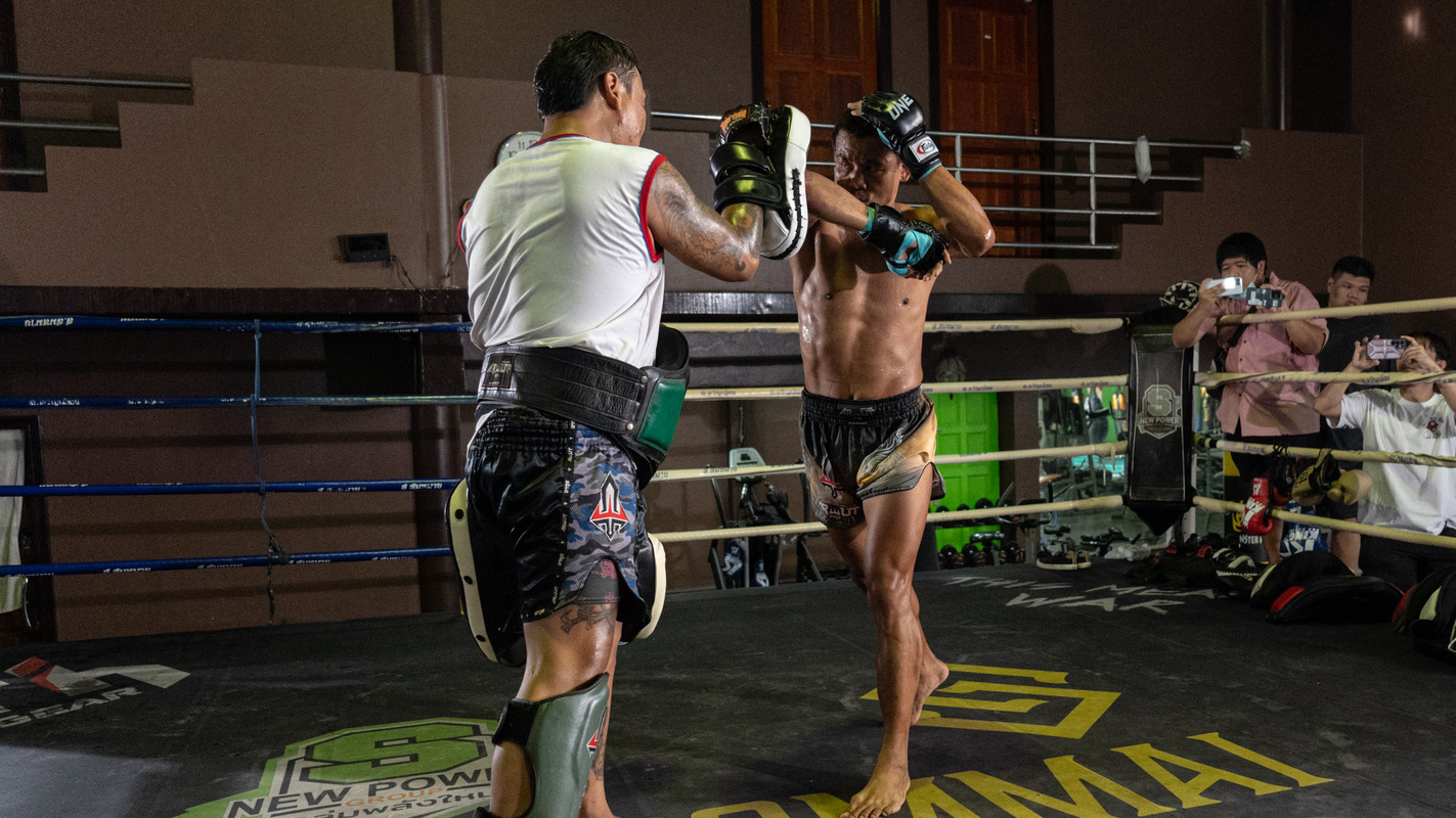 During the intimate workout session, Seksan Or Kwanmuang dazzled in front of the camera. There, he performed several rounds of shadowboxing before transitioning to pad work with his trainer.