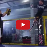 In this hilarious fail video, we see a fighter attempt Anthony Pettis’ ‘Showtime punch’ off the cage, and then trip and fall. See for yourself.