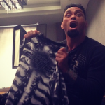 “I always wear gi pants when I train. It helps with my game. It’s harder to pull your leg out when it’s locked down with gi pants. There was a whole big scandal over the pants. I asked to wear pants specifically, because in the rules it says all no-gi competitors must wear a rash guard and board shorts.