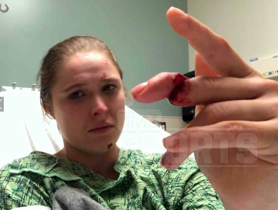 Rousey, according to the report, injured two fingers in the incident, her middle and ring fingers with the former getting the worst of it. Rousey broke and nearly severed the tendon in her middle finger, as can be seen in the photos below, courtesy of TMZ.