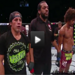 Bellator’s Gzim Selmani is a literal choking machine. Watch as he takes this man out quick, elevating him off his feet, before putting him to sleep.