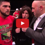 Kelvin Gastelum speaks to UFC color commentator Joe Rogan immediately following his big first-round submission win against UFC veteran Jake Ellenberger at UFC 180.