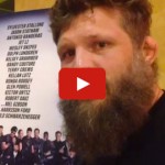 Roy “Big Country” Nelson takes a break from training to watch the “Expendables 3” movie premier.