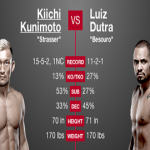 It started out with a slow pace, but both Kiichi Kunimoto and Luiz Dutra were throwing strikes that looked promising. Kunimoto was working for a takedown as he pressed Dutra up against the octagon fence, then things took a turn for the worst.