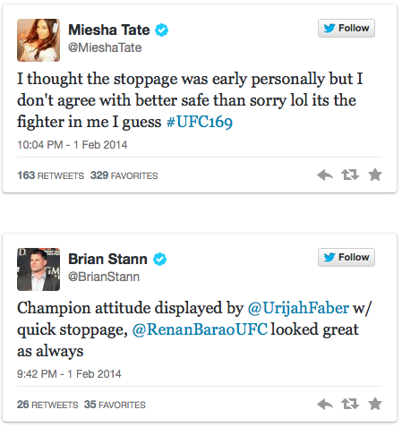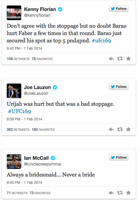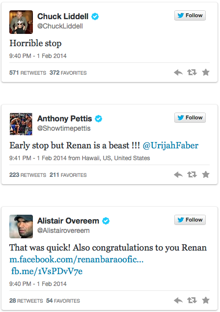 Check out some notable reactions to the Faber vs. Barao stoppage: