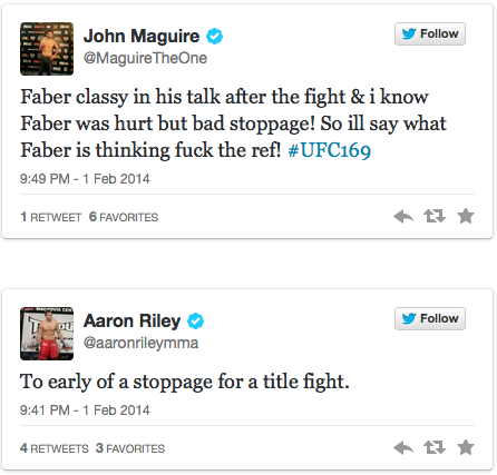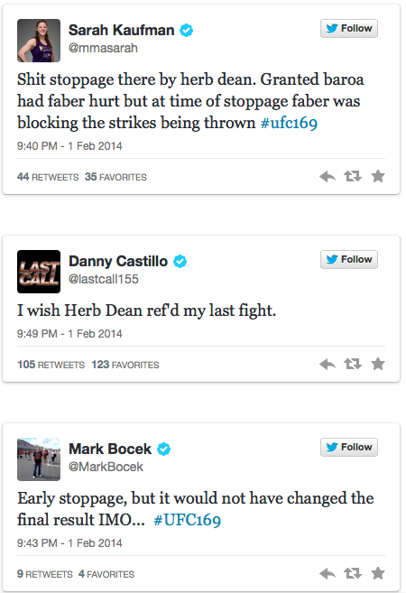 QUICK TWITT | Fighters React Harshly To Herb Dean’s UFC 169 Main Event Mistake