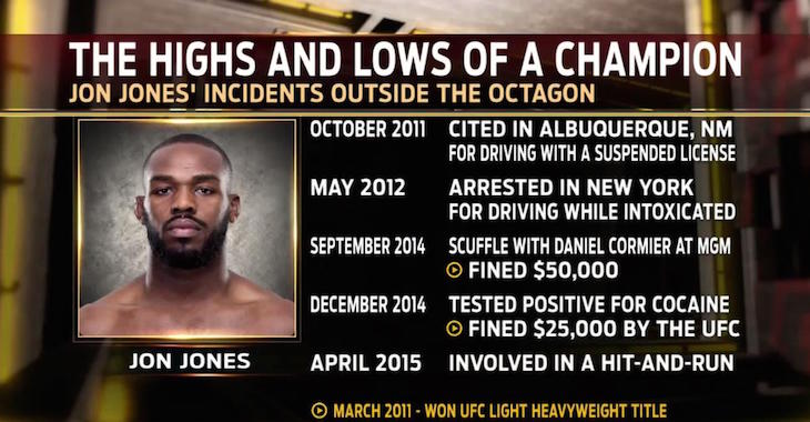 UFC Light Heavyweight Champion Jon Jones has quite the list of run-ins with the laws. Jones was recently charged for fleeing from the scene of an accident where an injury or death could have taken place.
