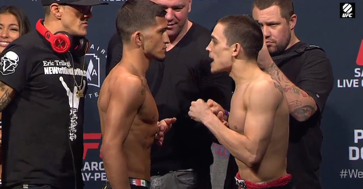 Earlier today from the Kay Bailey Hutchison Convention Center in Dallas, the UFC 185 fighters hit the scales to make their bouts official.